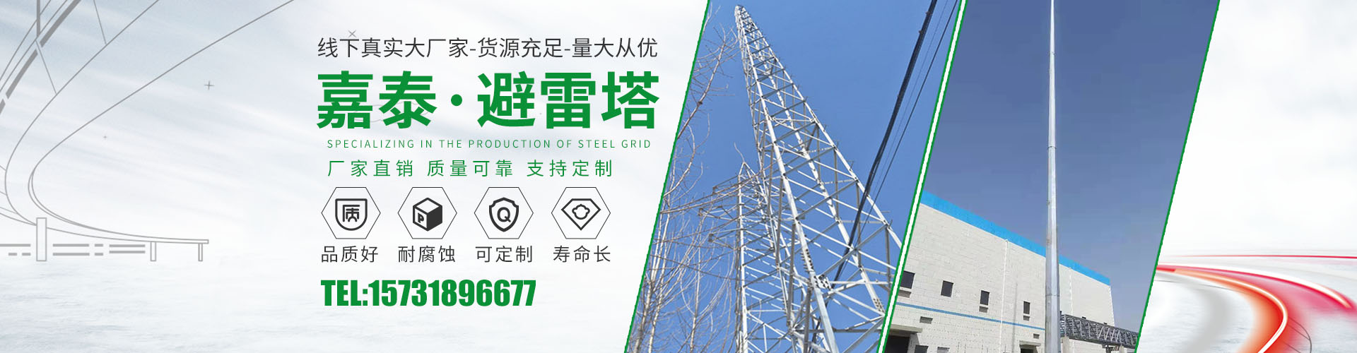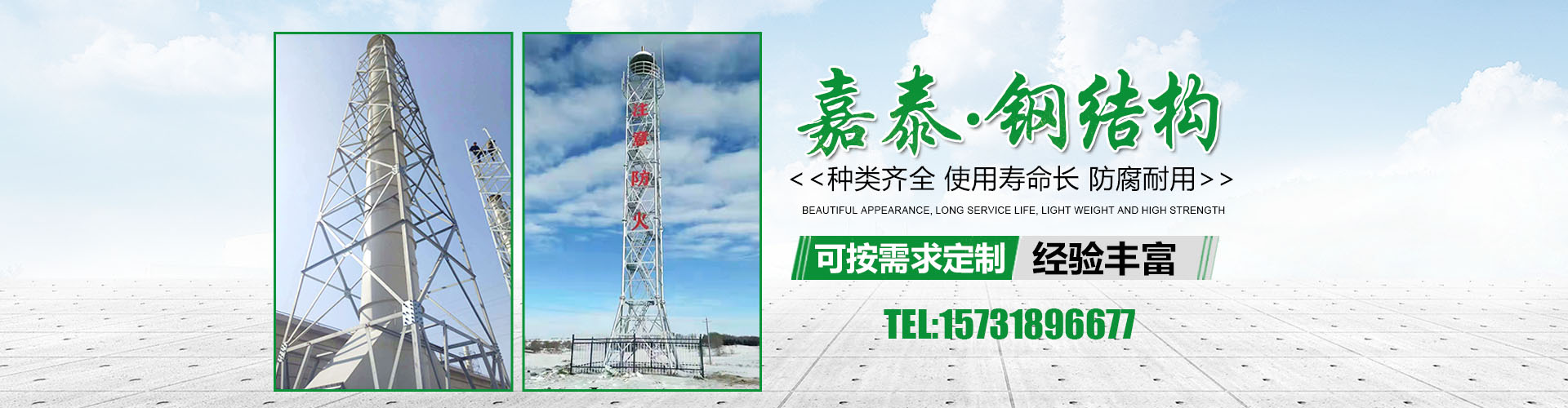 衡水嘉泰鋼結(jié)構(gòu)有限公司位于鐵塔制造之鄉(xiāng)-衡水市景縣廣川經(jīng)濟(jì)開發(fā)區(qū),石德、京九鐵路交匯處,距北京、天津、石家莊、濟(jì)南均在2小 時交通圈內(nèi),交通便利。公司主要產(chǎn)品有:避雷塔、監(jiān)控塔、瞭望塔、消防訓(xùn)練塔、電力架構(gòu)、樓頂工藝塔、廣播電視塔、煙囪塔、測風(fēng)塔 、電力塔、單管塔、雷達(dá)塔、仿生樹塔、氣象觀測塔、路燈桿,一體化基站、ETC龍門架等,是一家集設(shè)計,生產(chǎn),運(yùn)輸,安裝,維護(hù)為一體的廠家。主要服務(wù)于鐵塔公司、通信三大運(yùn)營商、國防通訊,鐵路及森 ......